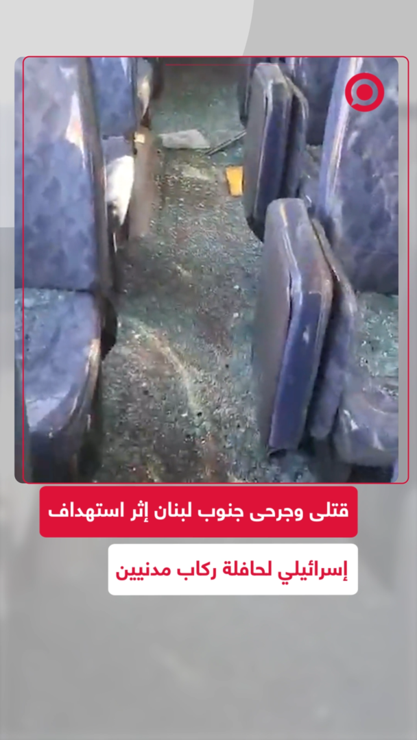 لقطات لحافلة تقل مدنيين مدمرة جراء استهداف من الجيش الإسرائيلي