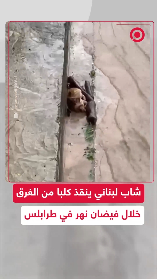 شاب لبناني ينقذ كلبا من الغرق خلال فيضان نهر أبو علي في مدينة طرابلس