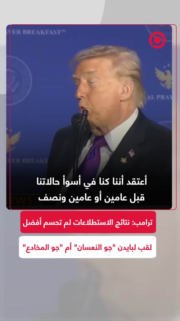 ترامب: نتائج الاستطلاعات لم تحسم أفضل لقب لبايدن "جو النعسان" أم "جو المخادع"