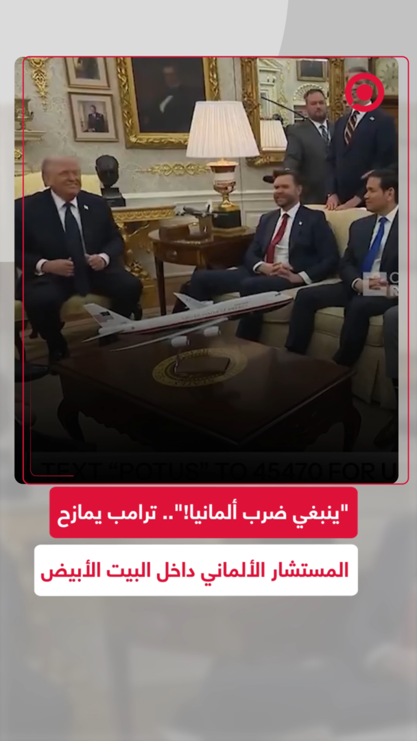 "ينبغي أن نضرب ألمانيا بشدة".. الرئيس الأمريكي دونالد ترامب يمازح المستشار الألماني فريدريش ميرتس خلال اجتماعهما في البيت الأبيض. #الولايات_المتحدة_الأمريكية #ترامب #المستشار_الألماني #ميرتس #البيت_الأبيض #مزحة #تريند #فيديو #اكسبلور