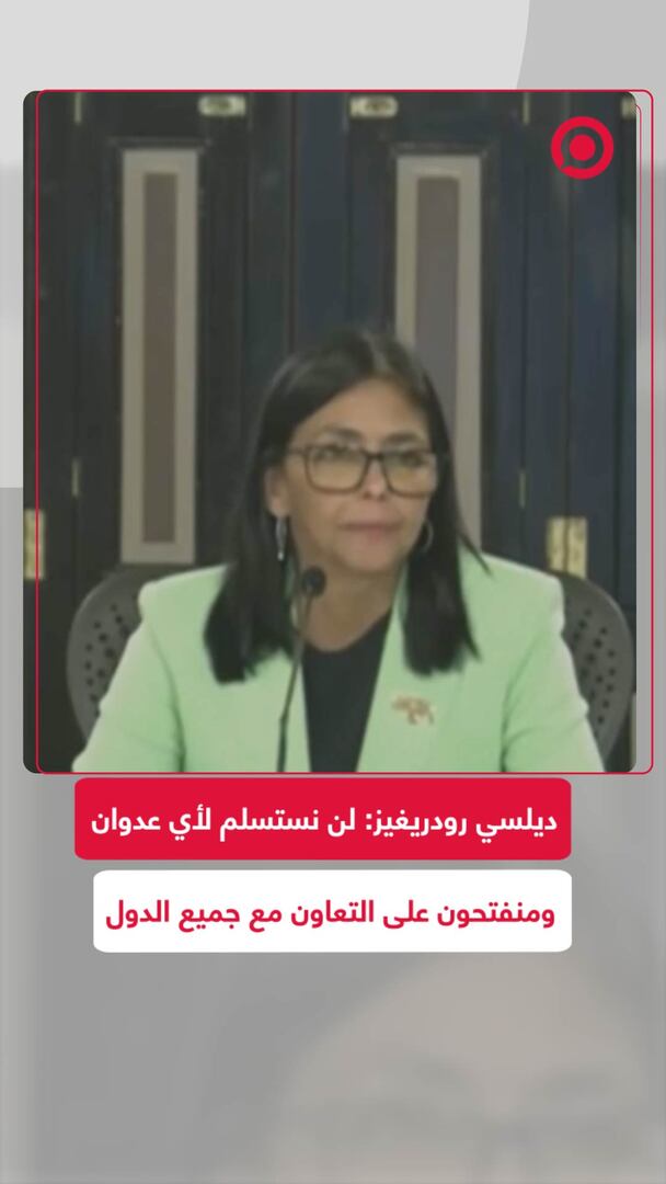 Play/Pause Mute/Unmute الرئيسة الفنزويلية المؤقتة: لن نستسلم لأي عدوان ومنفتحين على التعاون مع جميع الدول Save post Share Facebook X VK.com Telegram